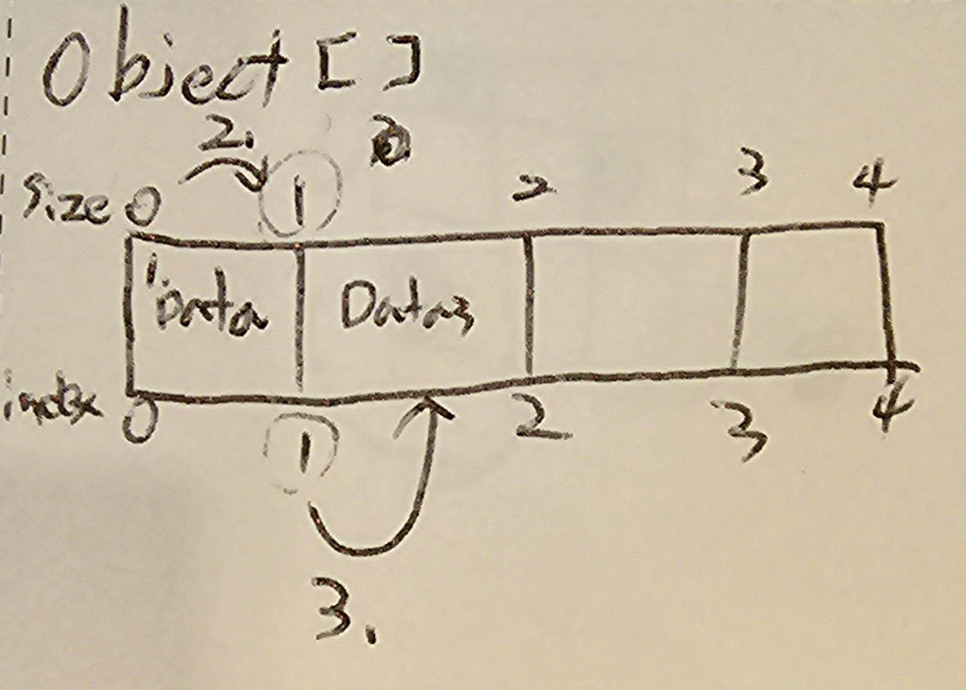 - size 는 배열에 담긴 요소의 숫자를 나타낸다. 동시에, 이후 담길 아이템의 index 값을 뜻하기도 한다.